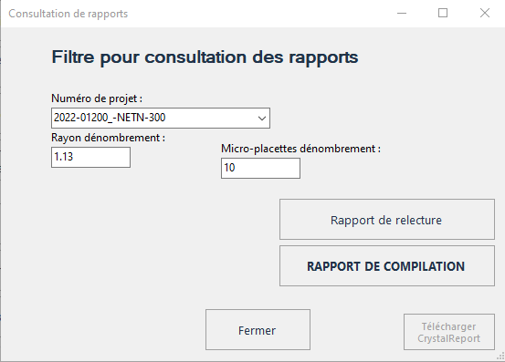 Consultez les rapports disponibles de vos parcelles réalisées. Vous devez cliquer sur «Consulter les rapports» dans la section «Poste de travail». Cette fenêtre permet de générer différents rapports en fonction de différents filtres.