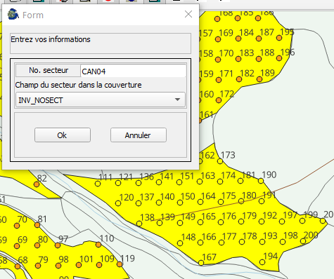 2. Cliquez sur l’icone et inscrire le No de Secteur et sélectionner ensuite le champ associé, faites "ok"