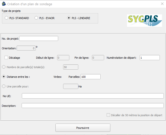 4. Comparativement aux instructions du Plan de Sondage Standard, vos paramètres seront un peu plus limité, seul la distance entre les parcelles sera exigé: