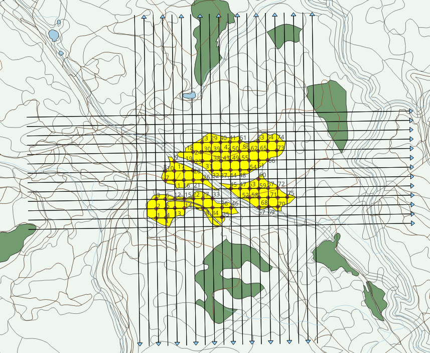 1. D'abord, sélectionnez à partir de votre couche ligne, les secteurs d’inventaire à sonder :