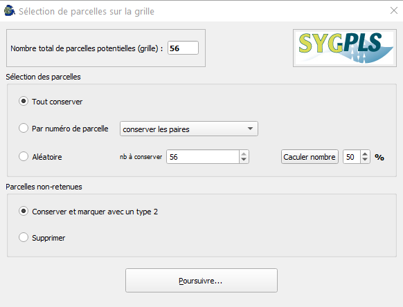SYG-PLS fera 20 essais afin d’obtenir le nombre exact de parcelles demandées.