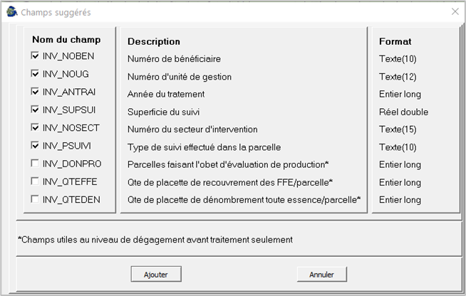 Ces champs vont apparaître dans la table attributaire de la couche du plan de sondage.