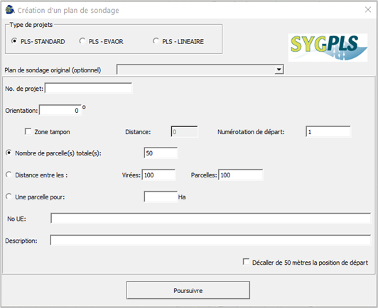 2. Dans la barre d’outils SYG-PLS, sélectionnez l’icône de création d’un plan de sondage :