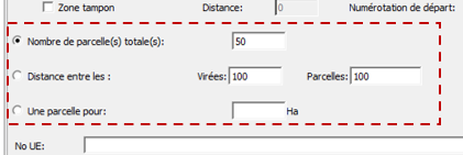 6. Si vous cochez "Zone tampon", une zone tampon entre la bordure de l’unité d’échantillonnage et le plan de sondage va être créée. Inscrivez la valeur négative de la zone tampon en mètres dans la case "Distance";