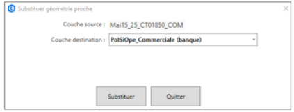 - Cette fonctionnalité permet de remplacer la géométrie d’une entité par la géométrie d’une autre entités situées dans une autre couche.